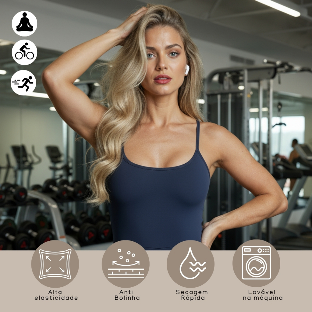 Versátil: perfeito para academia, corrida, pilates, yoga ou até composições casuais.