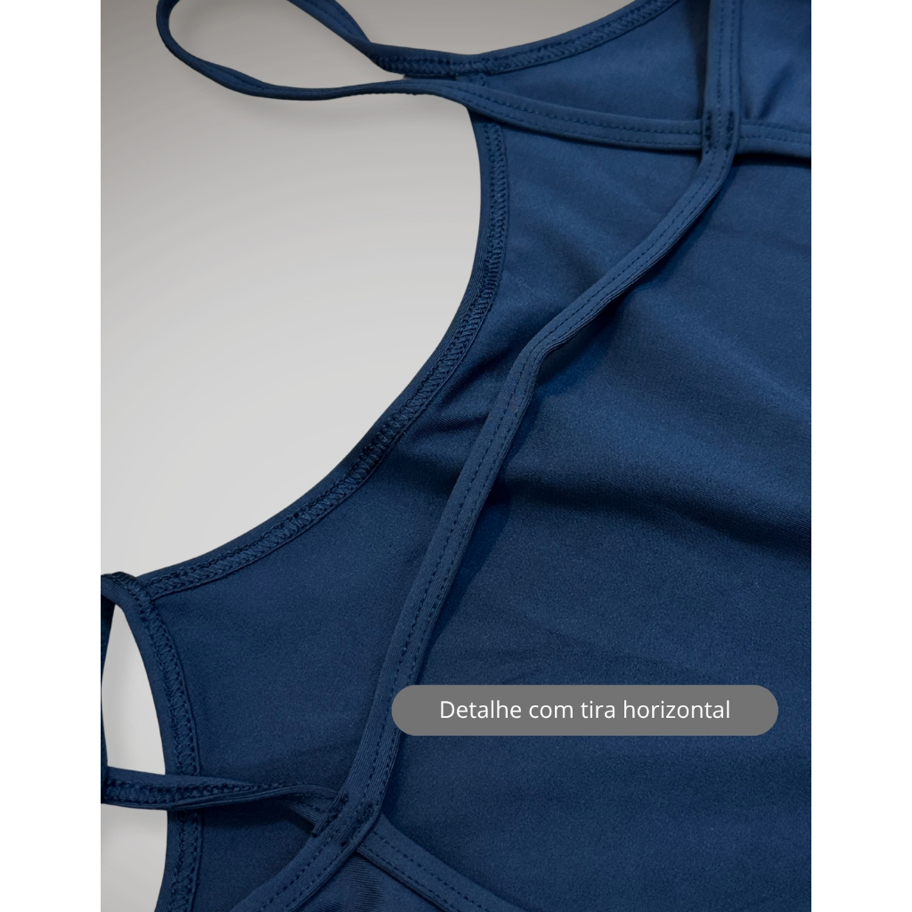 ✔ Alças finas e costas aberta – detalhe com tira horizontal nas costas para maior sustentação.